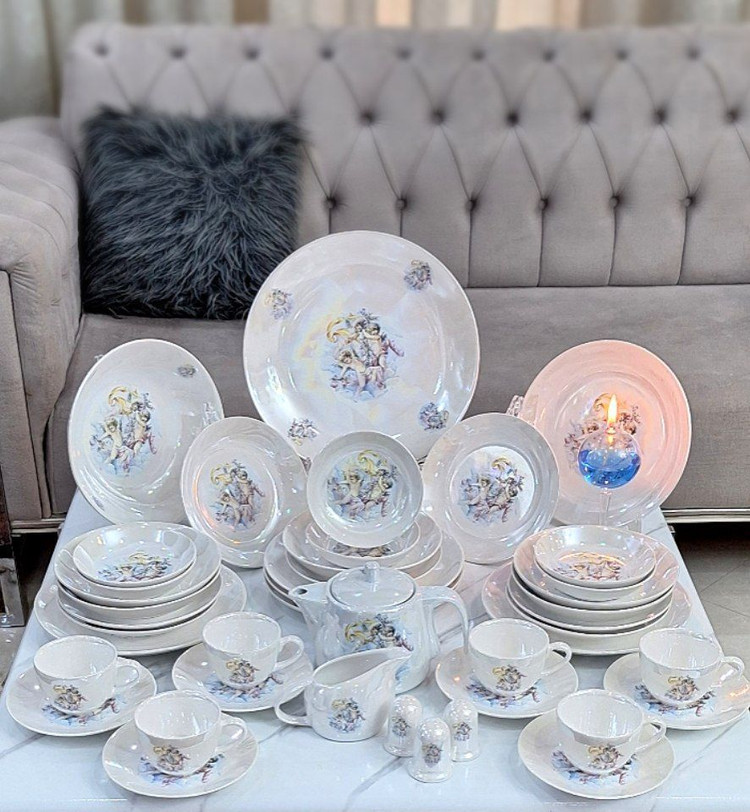✅سرویس ۳۰ پارچه غذاخوری رنگ صدفی طرح فرشته شامل👇